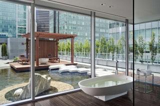 Rising 660 feet, this is the tallest building in Vancouver; the Shangri-La's 119 rooms occupy the first 15 floors, and non-hotel suites occupy the remaining 47. Rooms are large; even the smallest, the Superior Room, has more than 400 square feet of space. We love the floor-to-ceiling windows and expansive bathrooms with granite vanities and soaking tubs. Plus, in some, the millwork is simply amazing; hanging art on such a beautiful backdrop feels almost like sacrilege. Although we may have liked a glitzier lobby, the beige-and-brown color palette creates a subtle, luxurious vibe upstairs.