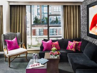 Located on Burrard Inlet, the Pan Pacific is most recognizable for its so-called “Five Sails,” massive white sheets that have flown outside Canada Place, the surrounding complex, since Expo ’86. You've got lots of great views to choose from: north and west, past the stunning Vancouver Convention Centre toward Stanley Park, or east, a more urban view that takes in historic Gastown and Vancouver's busy port beyond. As for the rooms themselves: Pillow menus and complimentary shoe-shines are included in the entry-level category, but if you want more—the 1,475-square-foot Opal Suite, for example—you’ll also get free private check-in.