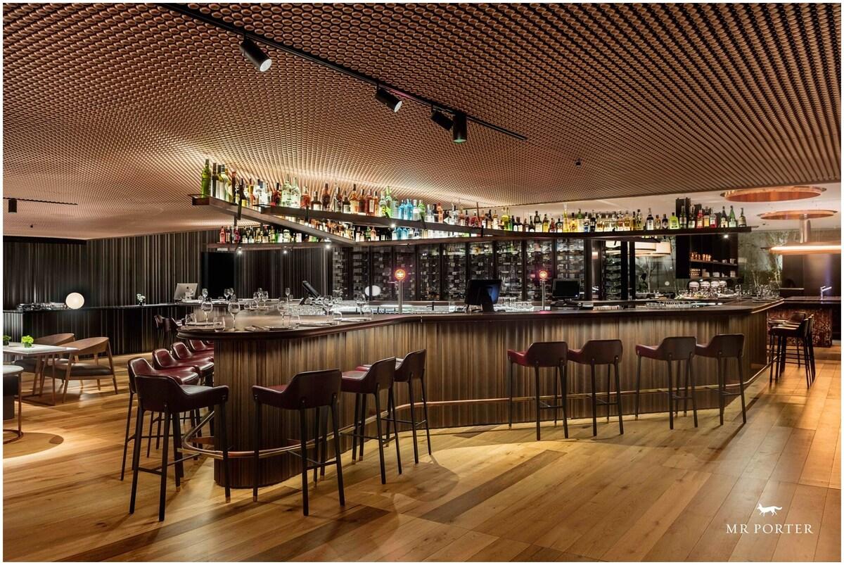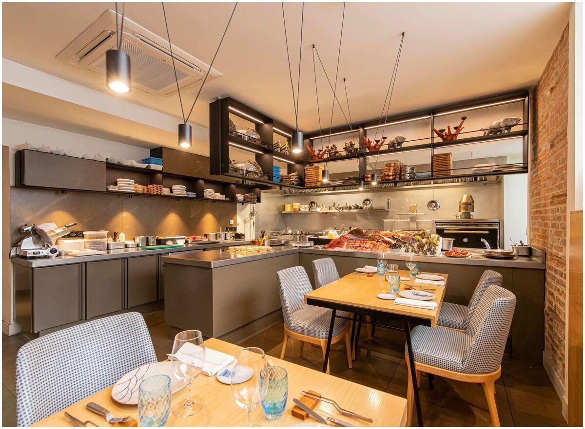 The restaurant is sleek and modern, with exposed brick, bare wood and stone tiles blurring the line between the city street outside and the interior of the dining room, separated only by a huge glass wall. The cuisine has obvious Spanish roots, but also strays north and west, with Provençal pate and black truffle burrata. Dishes such as the ortiguilla (sea anemone) omelette and the delicate semi-cooked sea bream with raisins and almonds are superb modern interpretations of Spanish classics, and the service is as informal as possible to avoid pretense while still offering a refined dining experience.