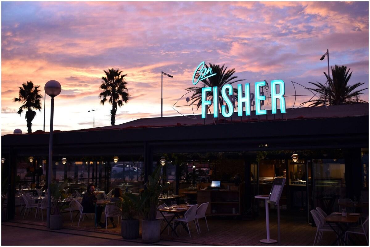 Tourists are inevitable at a seaside paella restaurant like this one, overlooking Bogatell beach, but what sets Can Fisher apart is the high proportion of locals, giving it Barcelona credibility. Fish dishes come in all shapes and sizes, from delectable red shrimp carpaccio to freshly shucked oysters, anchovies dripping with olive oil, steamed mussels and fresh salt-baked turbot. But again, the real highlight here is the wide range of paellas. From the goosebump-inducing lobster rice soup to the Arroz del Señorito, specially designed for young people who prefer not to get their hands dirty, to the black squid rice with small squid, padrón peppers and alioli, the selection is so good it's almost impossible to choose just one.