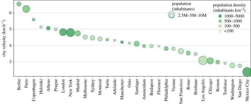 "This velocity score represents an indicator of the effectiveness of the public service in allowing rapid exploration of the urban space," the researchers explain. "It indicates, for example, that a citizen of Berlin or Paris can generally explore the space at least 20% faster than others.