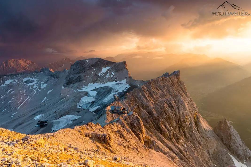 The view from the Zugspitze. To experience the evening at almost 3000 metres above sea level, you should definitely spend a night in the Münchner Haus